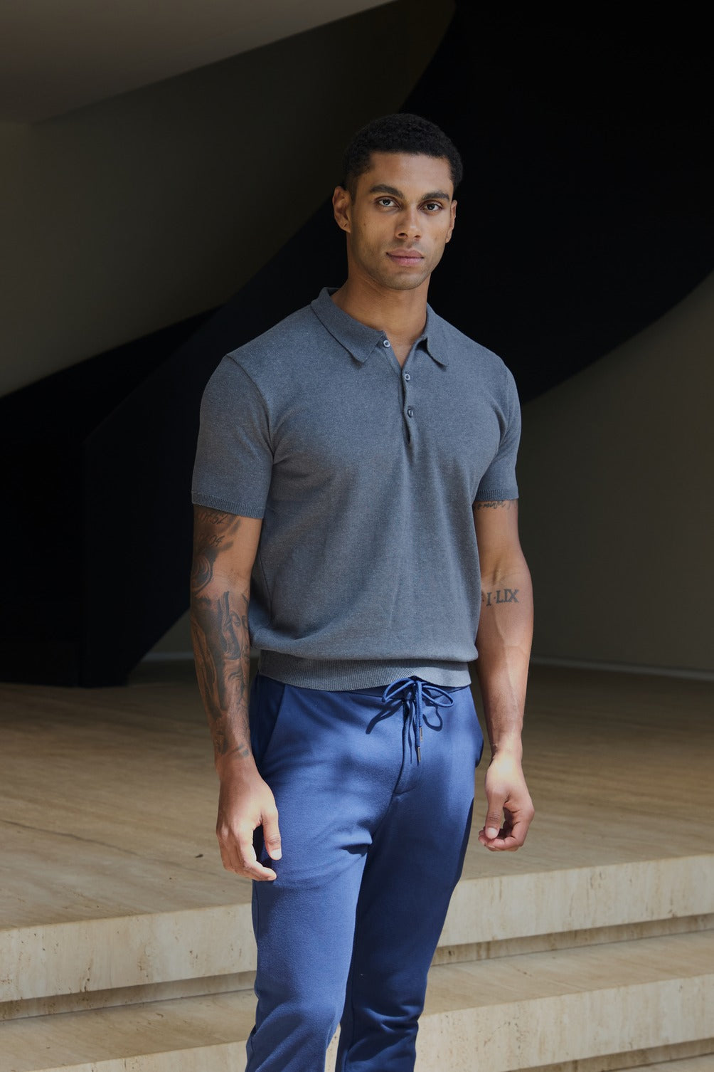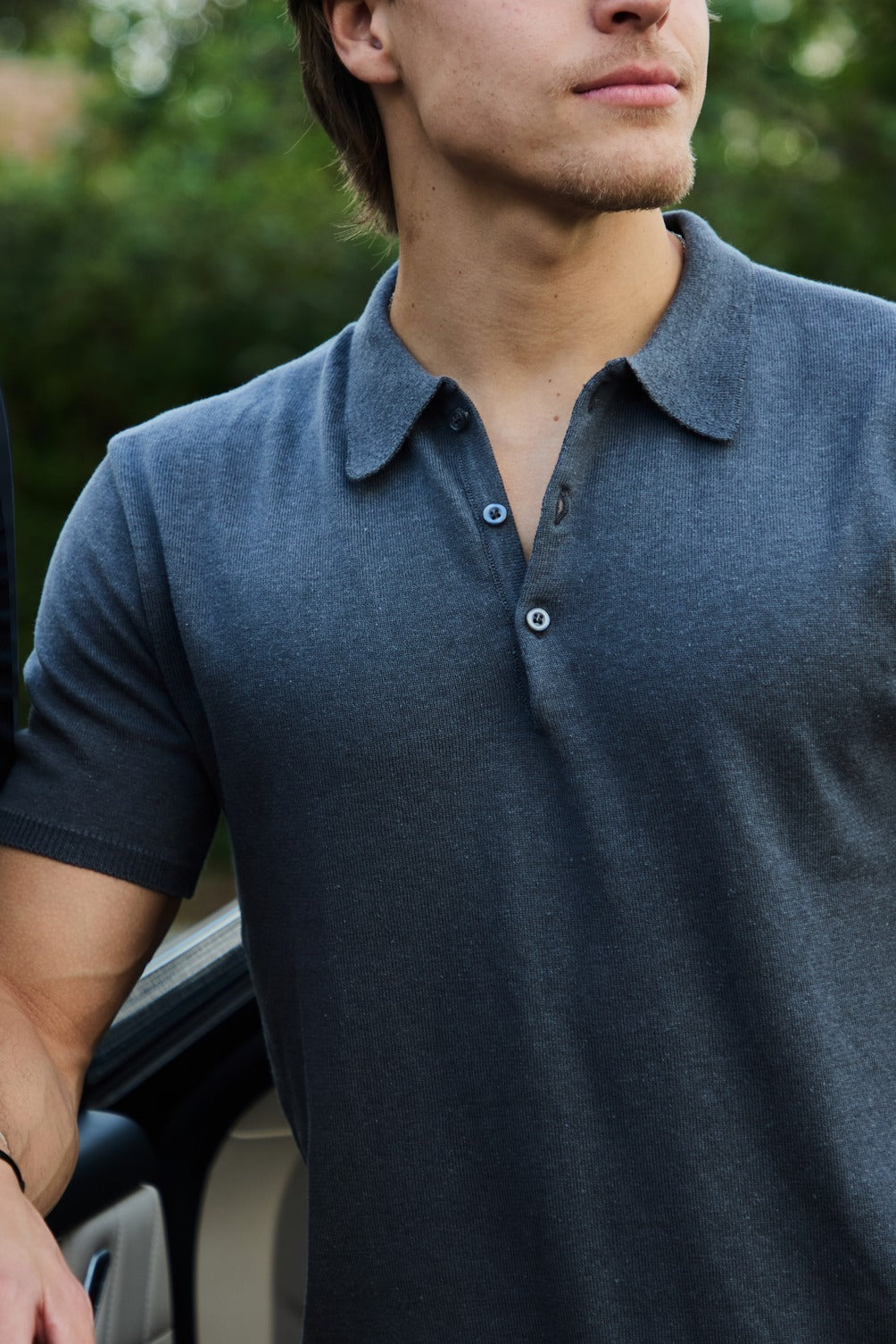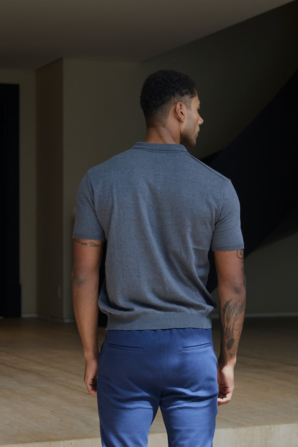 O design clássico da gola polo e o abotoamento discreto equilibram praticidade e sofisticação, enquanto o tom cinza escuro garante versatilidade para compor produções casuais ou mais alinhadas. Um essencial refinado para quem busca estilo atemporal com o diferencial do tricô.