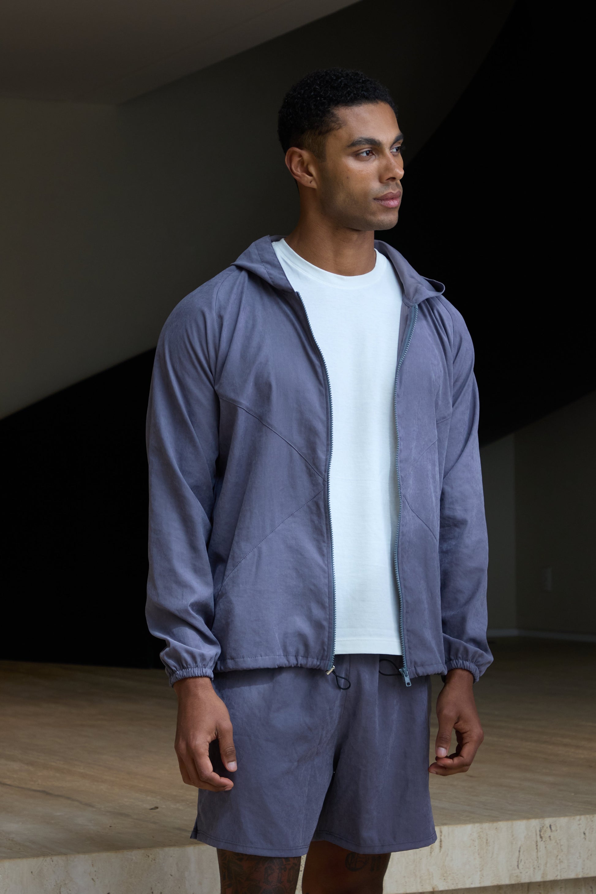 Shorts de comprimento médio confeccionado no mesmo tecido leve e macio com acabamento fosco e caimento solto. A cintura possui cós elástico com cordão regulador, proporcionando ajuste prático e seguro. Conta com bolsos laterais embutidos, garantindo funcionalidade sem perder a linha minimalista.