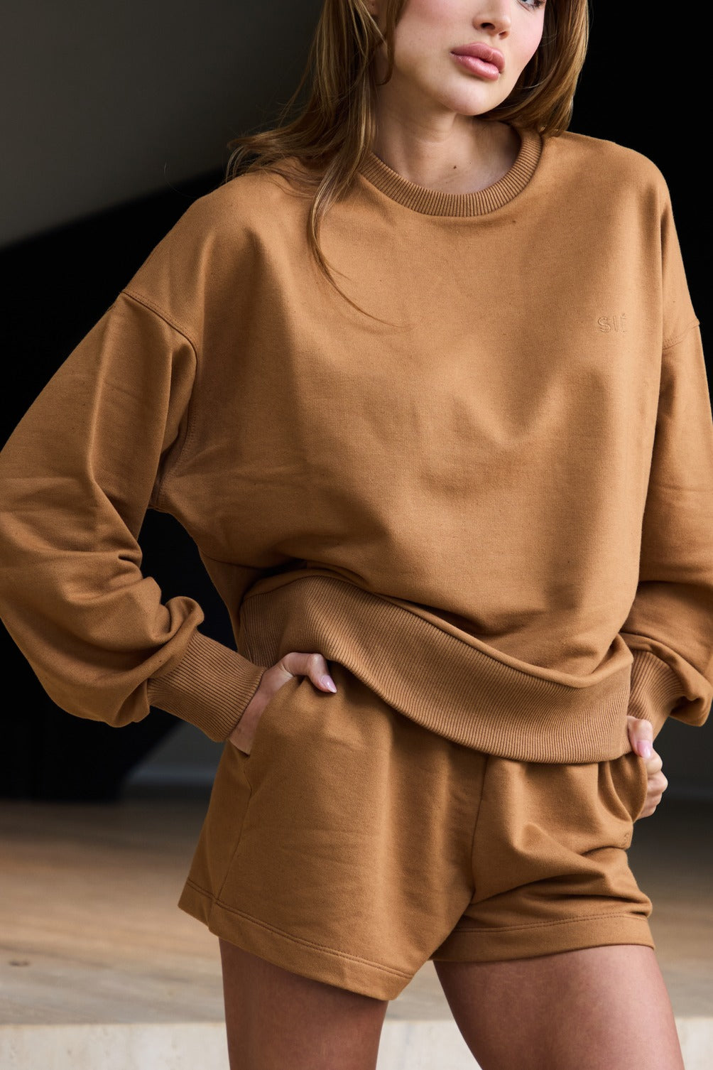 O shorts ease é confeccionado em tecido moletom. Tem um caimento soltinho que garante liberdade de movimento e uma sensação superagradável na pele. O cós é todo em elástico, oferecendo ajuste prático e confortável, sem apertar.
